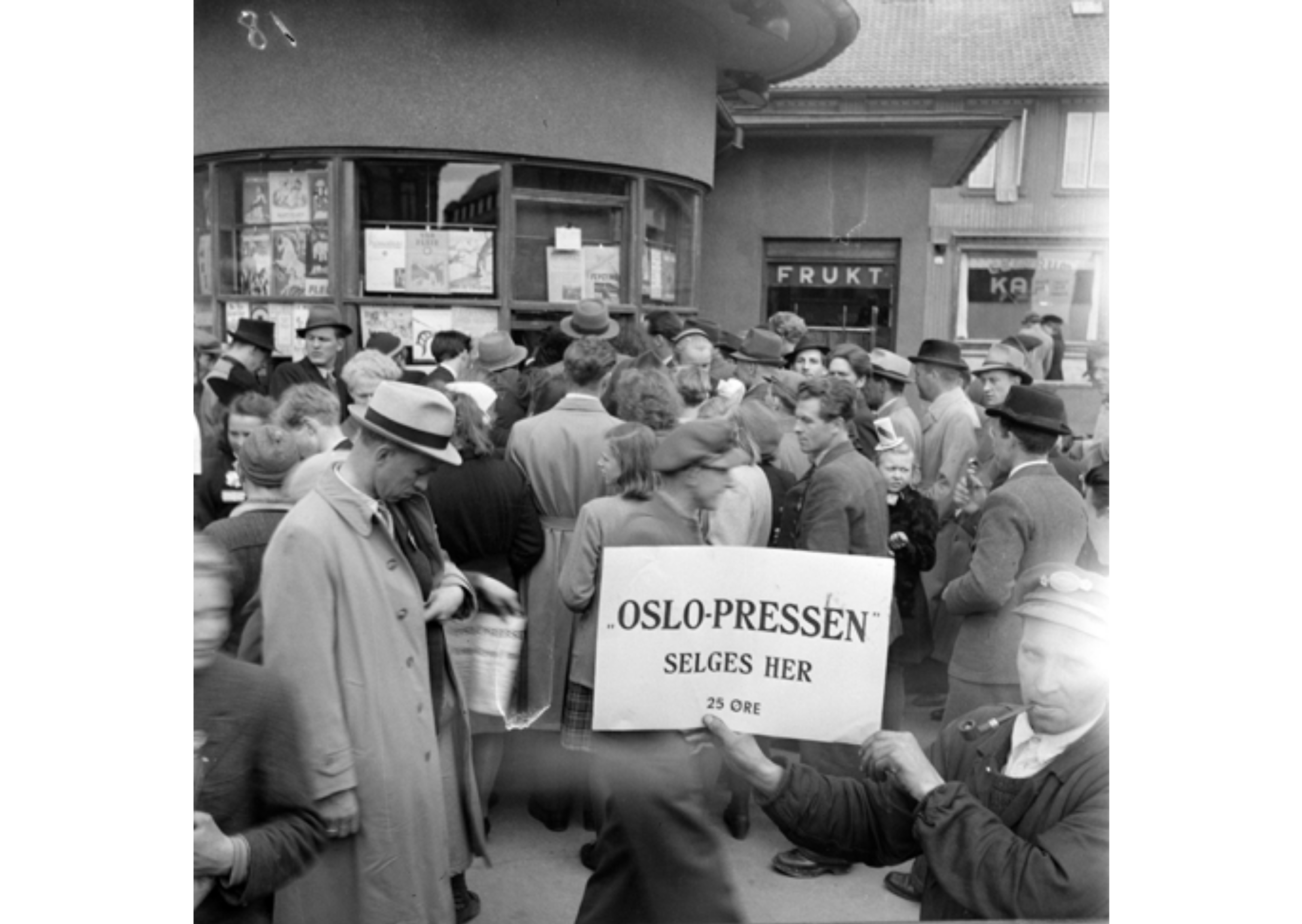 1945: Etter andre verdenskrig var Narvesen den eneste åpne distribusjonskanalen for aviser og tidsskrifter i Norge.